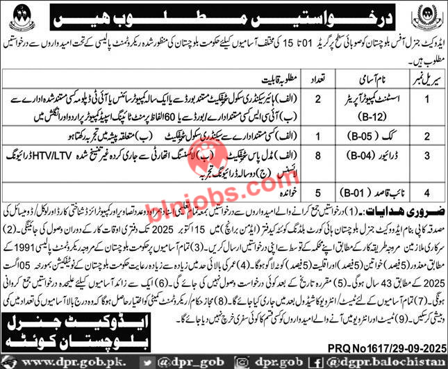 Latest Jobs in Advocate General Office Balochistan 2025| IMPORTANT LINKS
