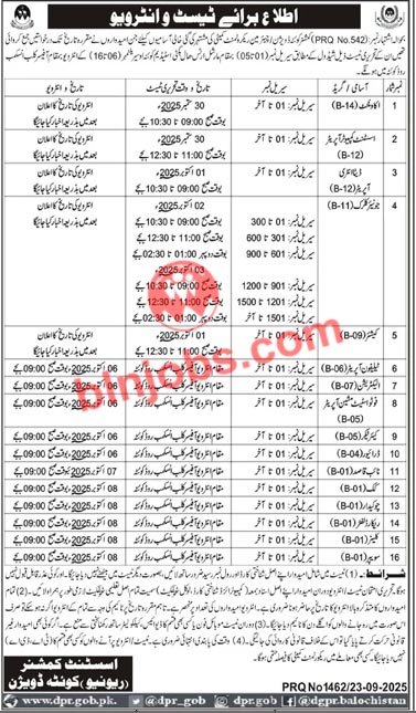 Assistant Commissioner Revenue Quetta Division recently announced test interviews for the vacant positions that were advertised in a local newspaper. The test and interview schedule of the department is now available, applicants can adequately prepare themselves for the next phase of the selection process. All candidates who have applied for these positions are requested to take note of the following schedule below.