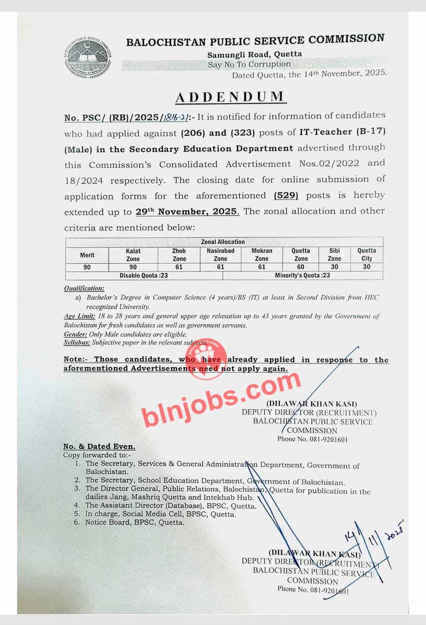 BPSC IT Teacher Jobs 2025 has recently announced job vacancies for Balochistan 2025 in the local newspaper. This is an opportunity for candidates of Balochistan Local Domicile who are seeking employment in the province. The department is inviting applications from the candidates of Balochistan for the following Balochistan jobs 2025. If you meet the eligibility criteria and possess the required skills, this is your chance to apply and get these jobs in Balochistan.
