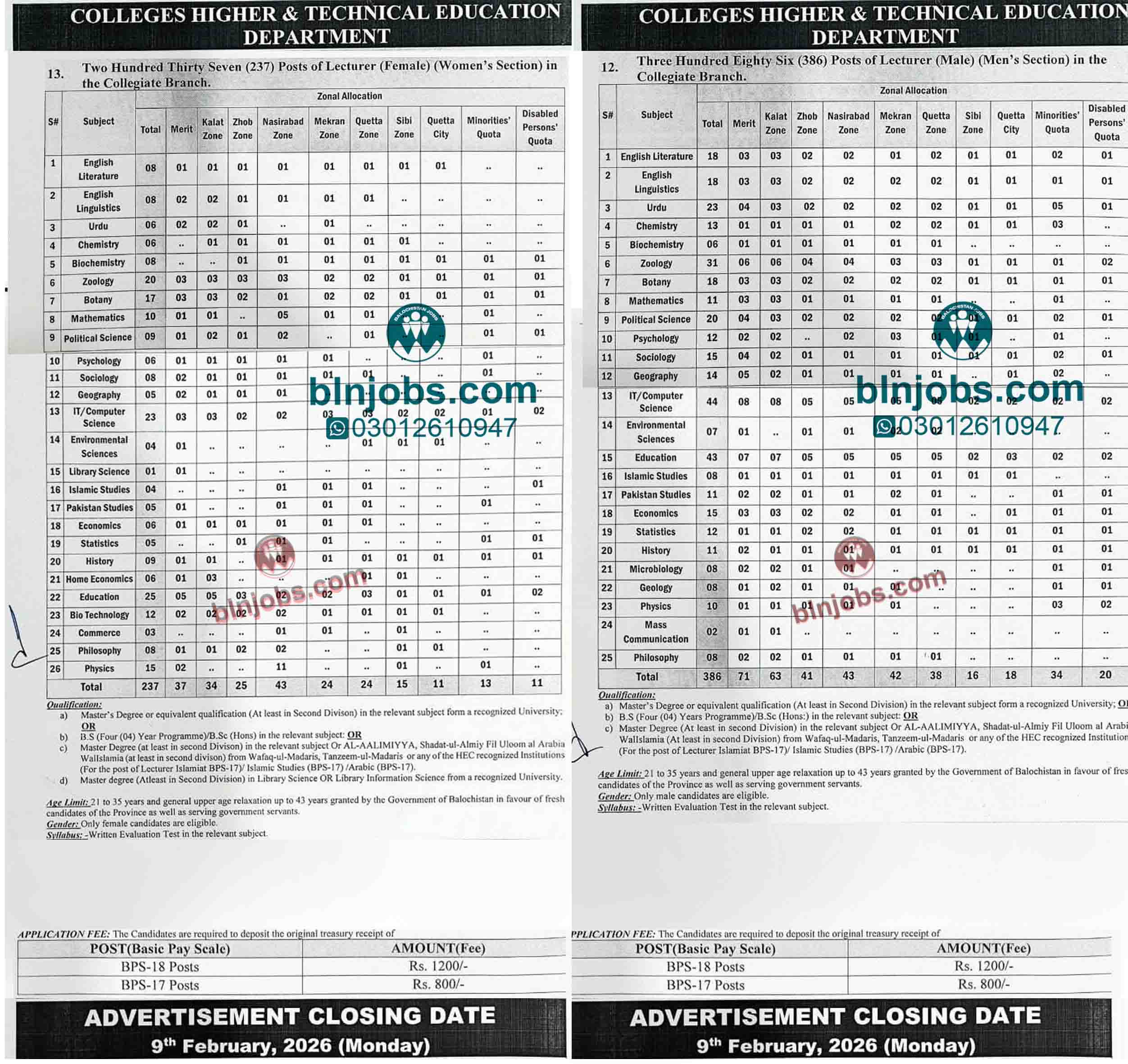 BPSC Lecturer Jobs 2026 – Male Female BPSC Jobs 2026– Advertisement No 1-2026 has recently announced job vacancies for Balochistan 2026 in the local newspaper. This is an opportunity for candidates of Balochistan Local Domicile who are seeking employment in the province. The department is inviting applications from the candidates of Balochistan for the following Balochistan jobs 2026. If you meet the eligibility criteria and possess the required skills, this is your chance to apply and get these jobs in Balochistan.