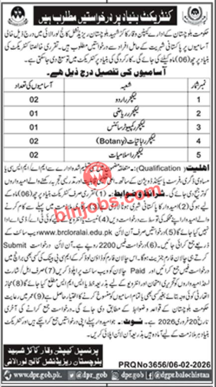 Latest Jobs in BRC College Loralai 2026| IMPORTANT LINKS