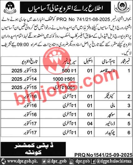 Deputy Commissioner DC Quetta recently announced test interviews for the vacant positions that were advertised in a local newspaper. The test and interview schedule of the department is now available, applicants can adequately prepare themselves for the next phase of the selection process. All candidates who have applied for these positions are requested to take note of the following schedule below.