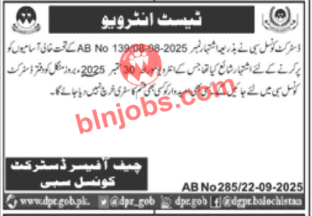 District Council Sibi recently announced test interviews for the vacant positions that were advertised in a local newspaper. The test and interview schedule of the department is now available, applicants can adequately prepare themselves for the next phase of the selection process. All candidates who have applied for these positions are requested to take note of the following schedule below.