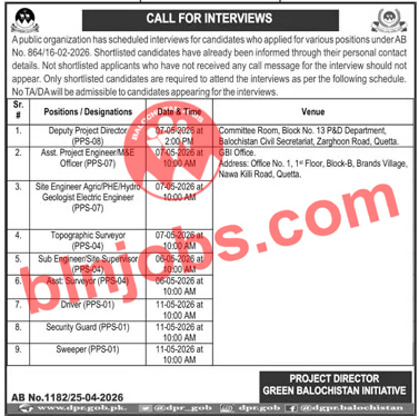 Green Balochistan Initiative Interviews 2026 recently announced test interviews for the vacant positions that were advertised in a local newspaper. The test and interview schedule of the department is now available, applicants can adequately prepare themselves for the next phase of the selection process. All candidates who have applied for these positions are requested to take note of the following schedule below.