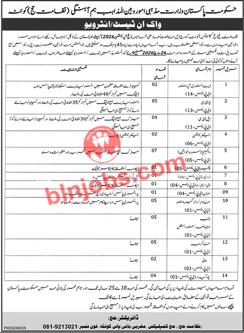 Hajj Complex Quetta Jobs 2026 – Walk in Interview