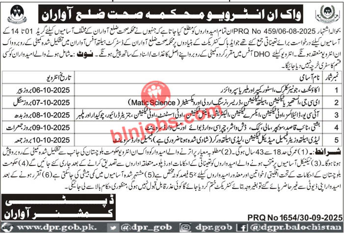 Health Department Awaran Test Interviews 2025