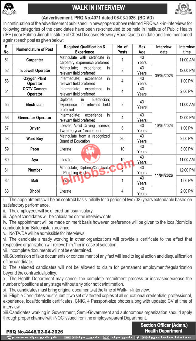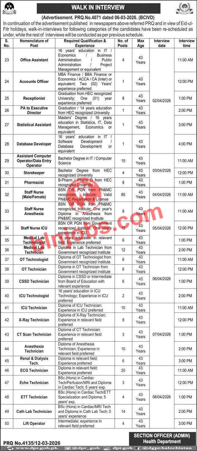 If you wish to apply for these jobs in Health Department Balochistan Institute of Cadio Vascular Diseases Jobs 2026, it is essential to follow the application procedure as defined in the job advertisement below and can get these Jobs in Balochistan 2026 after the complete recruitment process.