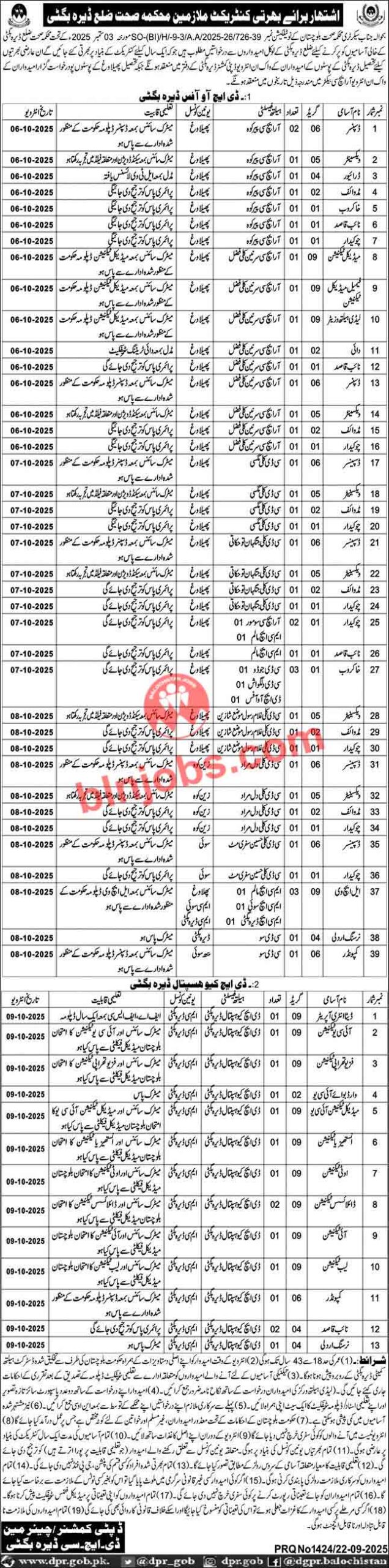 Latest Jobs in Health Department Dera Bugti 2025| IMPORTANT LINKS