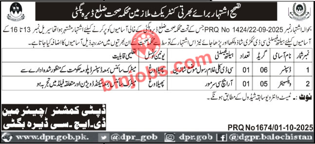 Health Department Dera Bugti Jobs 2025