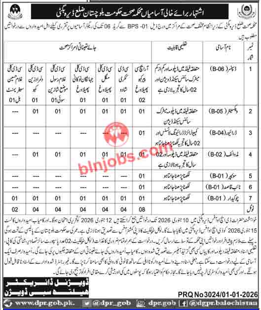 Latest Jobs in Health Department Dera Bugti  2026| IMPORTANT LINKS