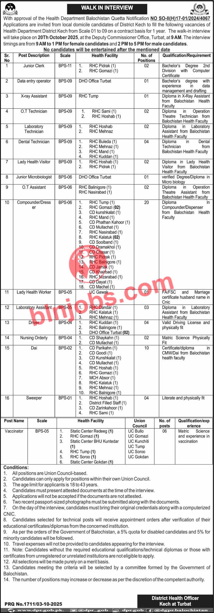 Latest Jobs in Health Department Kech 2025| IMPORTANT LINKS