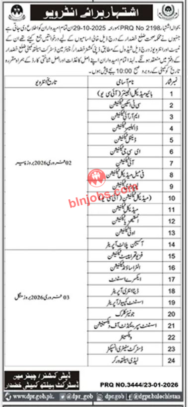 Health Department Khuzdar Interviews 2026