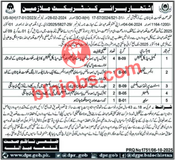 Latest Jobs in Health Department Killa Abdullah 2025| IMPORTANT LINKS