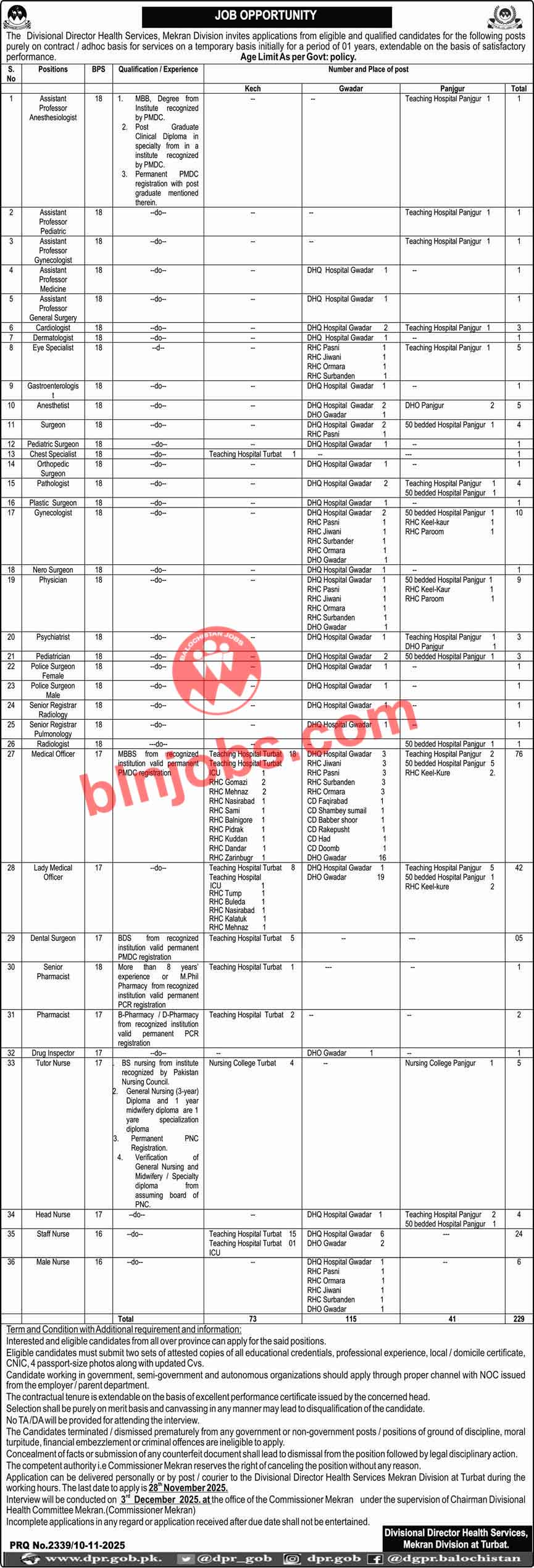 Latest Jobs in Health Department Makran Division 2025| IMPORTANT LINKS