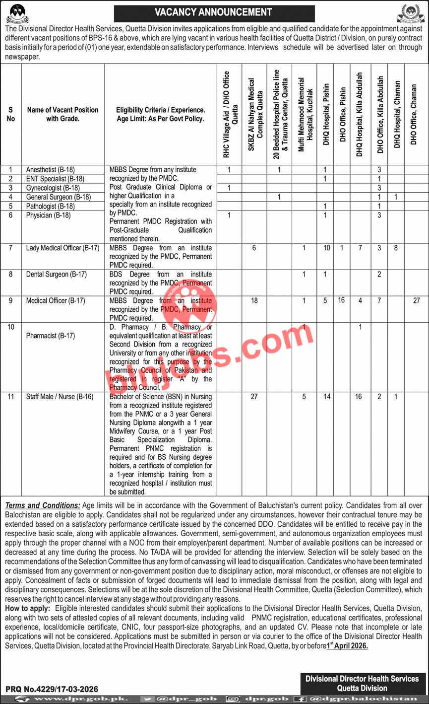 Latest Jobs in Health Department Quetta Division 2026| IMPORTANT LINKS