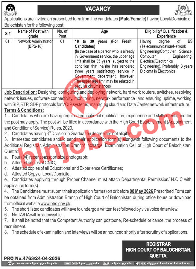 High Court Of Balochistan Jobs 2026 has recently announced job vacancies for Balochistan 2026 in the local newspaper. This is an opportunity for candidates of Balochistan Local Domicile who are seeking employment in the province. The department is inviting applications from the candidates of Balochistan for the following Balochistan jobs 2026. If you meet the eligibility criteria and possess the required skills, this is your chance to apply and get these jobs in Balochistan.