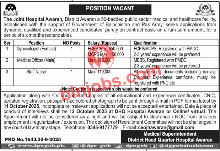 Latest Jobs in Joint Hospital Awaran 2025| IMPORTANT LINKS