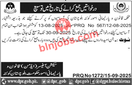 Law and Parliamentary Affairs Balochistan Jobs 2025