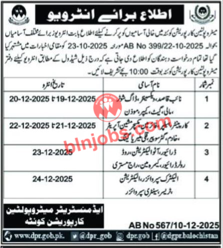 MC Quetta recently announced test interviews for the vacant positions that were advertised in a local newspaper. The test and interview schedule of the department is now available, applicants can adequately prepare themselves for the next phase of the selection process. All candidates who have applied for these positions are requested to take note of the following schedule below.