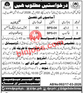 Municipal Committee MC Ormara Jobs 2026 has recently announced job vacancies for Balochistan 2026 in the local newspaper. This is an opportunity for candidates of Balochistan Local Domicile who are seeking employment in the province. The department is inviting applications from the candidates of Balochistan for the following Balochistan jobs 2026. If you meet the eligibility criteria and possess the required skills, this is your chance to apply and get these jobs in Balochistan.
