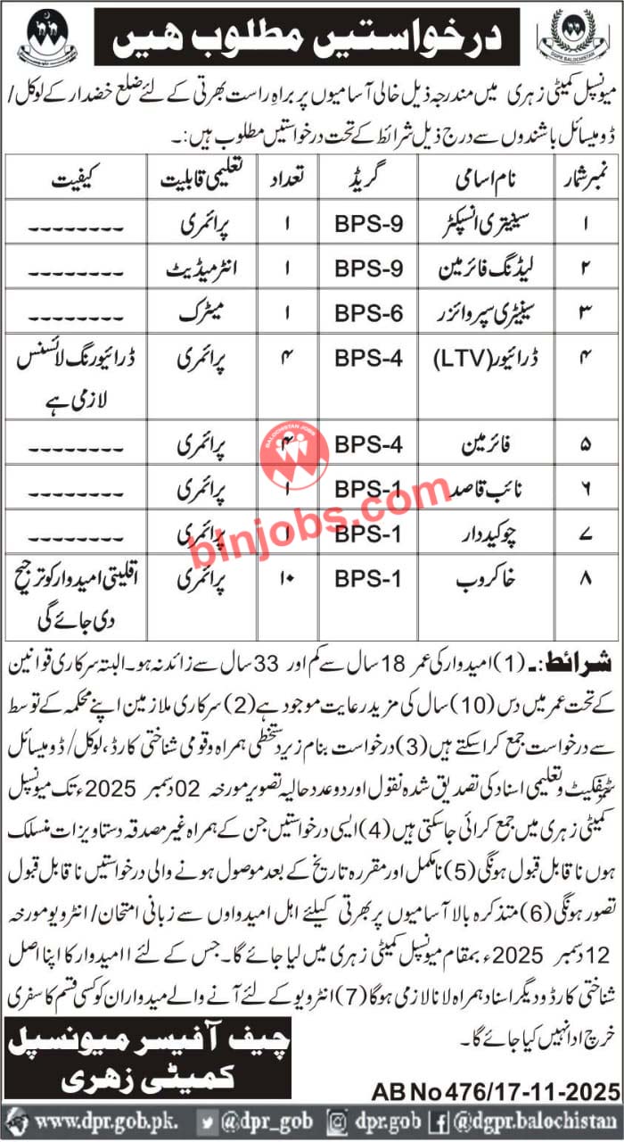 Latest Jobs in Municipal Committee MC Zehri 2025| IMPORTANT LINKS