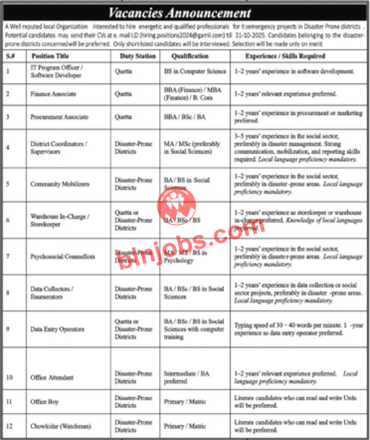 NGO Balochistan Jobs 2025