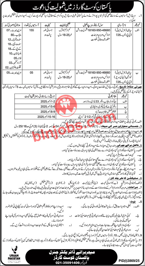 Latest Jobs in Pakistan Coast Guards 2025| IMPORTANT LINKS