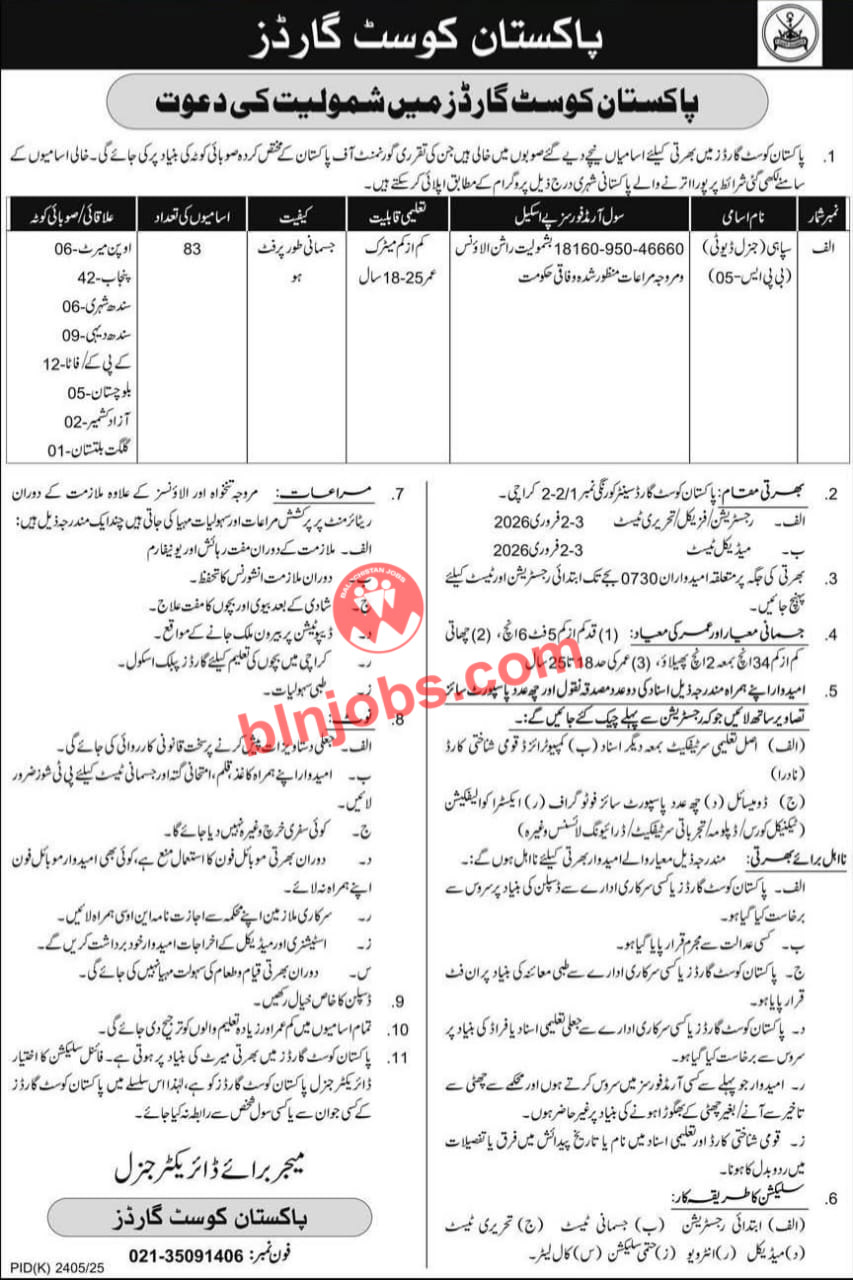 Latest Jobs in Pakistan Coast Guards PCG 2026| IMPORTANT LINKS
