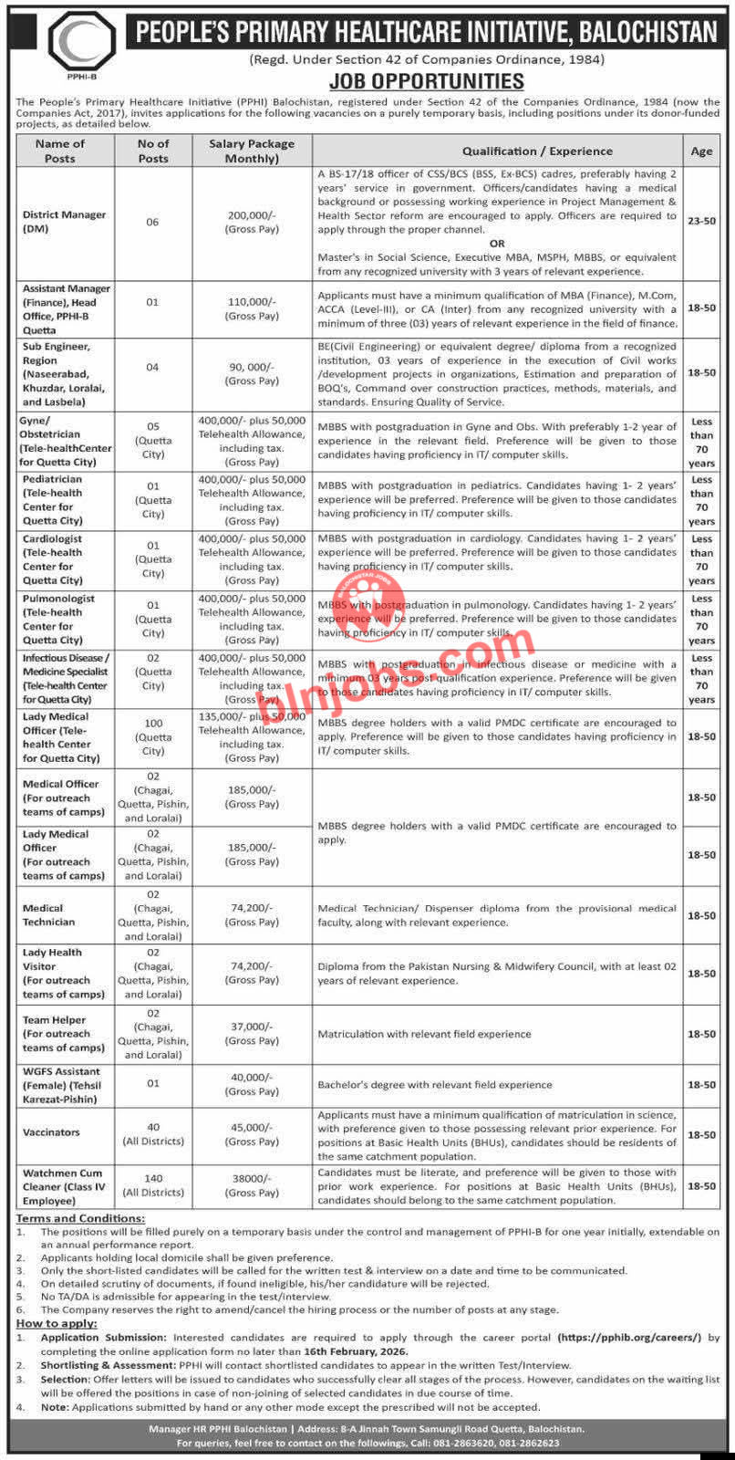 If you wish to apply for these jobs in PPHI Balochistan Jobs 2026, it is essential to follow the application procedure as defined in the job advertisement below and can get these Jobs in Balochistan 2026 after the complete recruitment process.