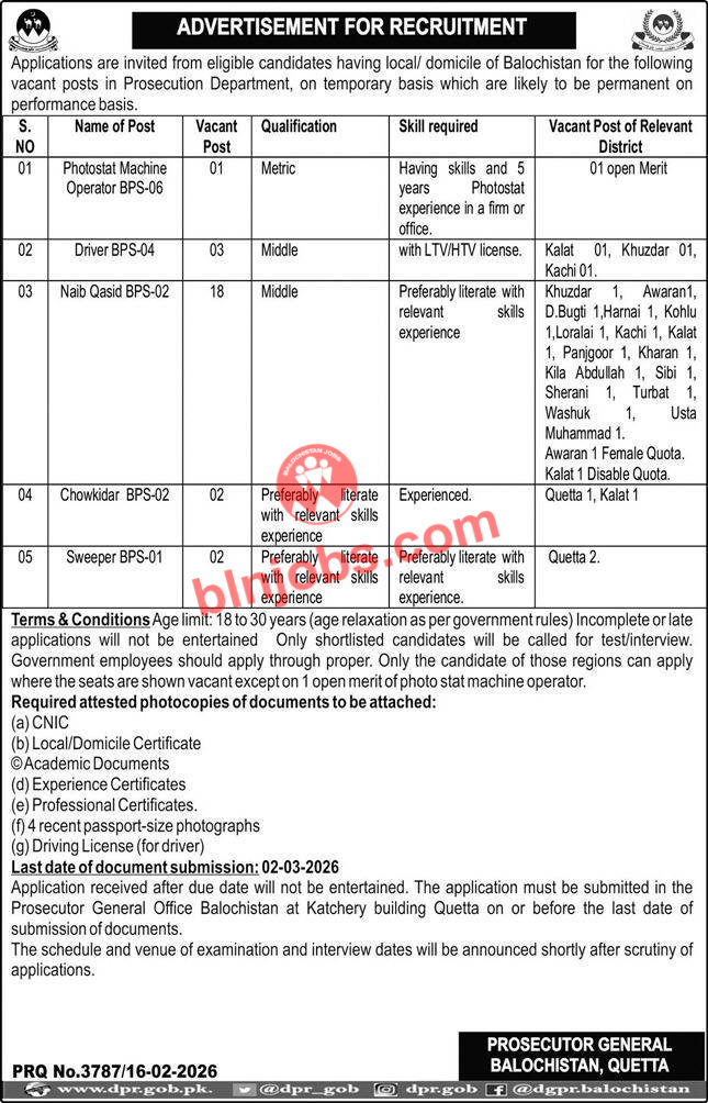 Latest Jobs in Prosecution Department Balochistan 2026| IMPORTANT LINKS