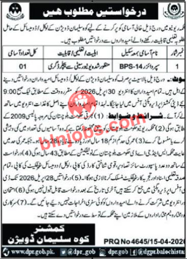 Revenue Department Koh e Sulaiman Division Jobs 2026 has recently announced job vacancies for Balochistan 2026 in the local newspaper. This is an opportunity for candidates of Balochistan Local Domicile who are seeking employment in the province. The department is inviting applications from the candidates of Balochistan for the following Balochistan jobs 2026. If you meet the eligibility criteria and possess the required skills, this is your chance to apply and get these jobs in Balochistan.
