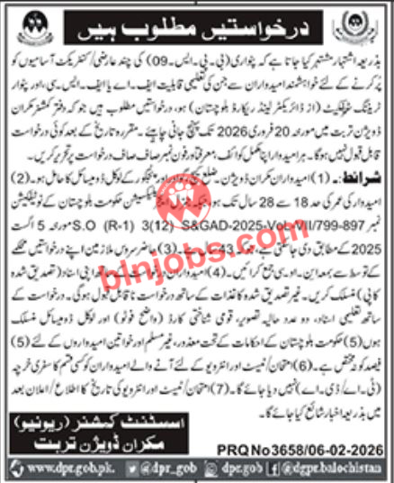 Latest Jobs in Revenue Department Makran Division Patwar 2026 | IMPORTANT LINKS