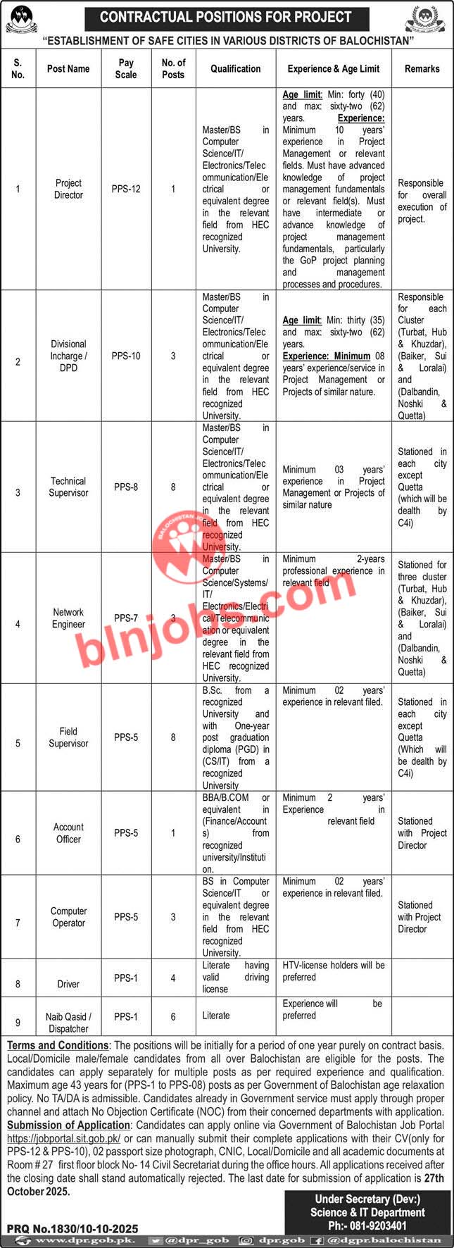 Latest Jobs in Safe Cities Balochistan 2025| IMPORTANT LINKS