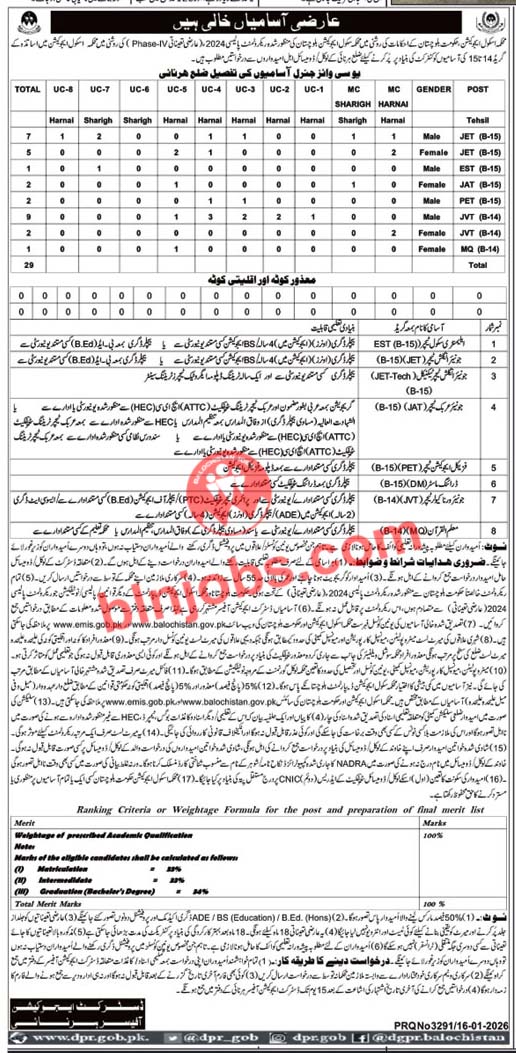 The recent jobs advertisement School Education Department Harnai Jobs 2026 has published various vacancies in Balochistan 2026. The advertisement provides detailed information about the job titles, required qualifications, experience, and other essential criteria. It is essential for interested candidates to carefully review the advertisement and ensure they meet all the requirements before proceeding with the application process.