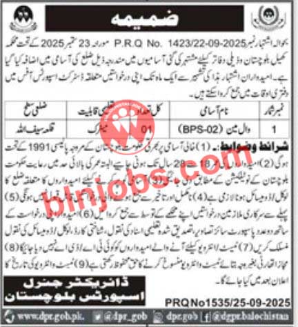 Latest Jobs in Sports Department Balochistan 2025| IMPORTANT LINKS