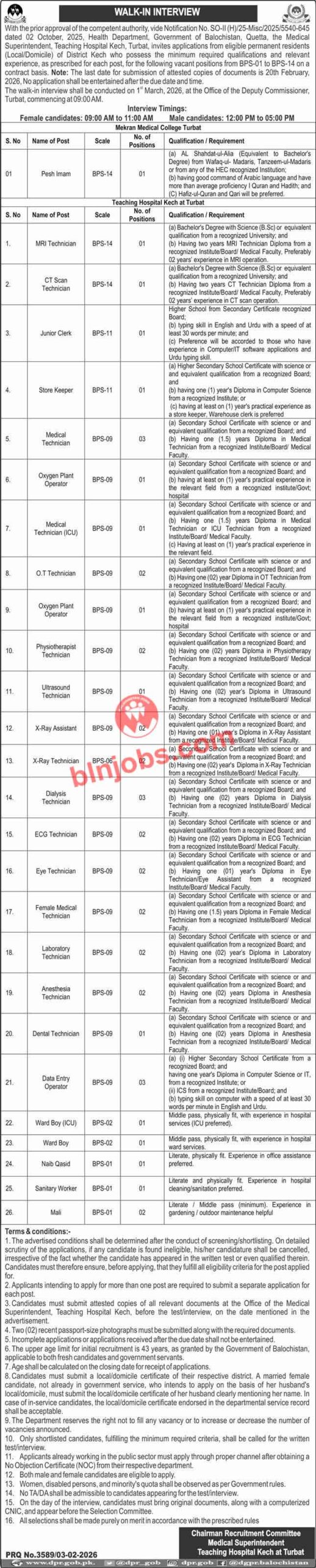 If you wish to apply for these jobs in Teaching Hospital Kech Jobs 2026, it is essential to follow the application procedure as defined in the job advertisement below and can get these Jobs in Balochistan 2026 after the complete recruitment process.
