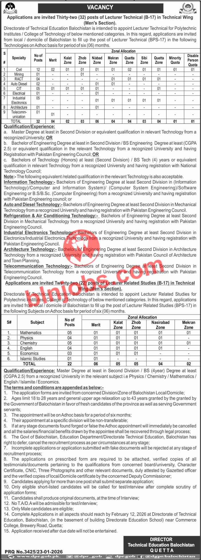Latest Jobs in Technical Education Balochistan 2026| IMPORTANT LINKS