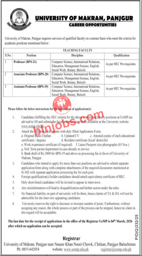 If you wish to apply for these jobs in University of Makran Panjgur Jobs 2026, it is essential to follow the application procedure as defined in the job advertisement below and can get these Jobs in Balochistan 2026 after the complete recruitment process.