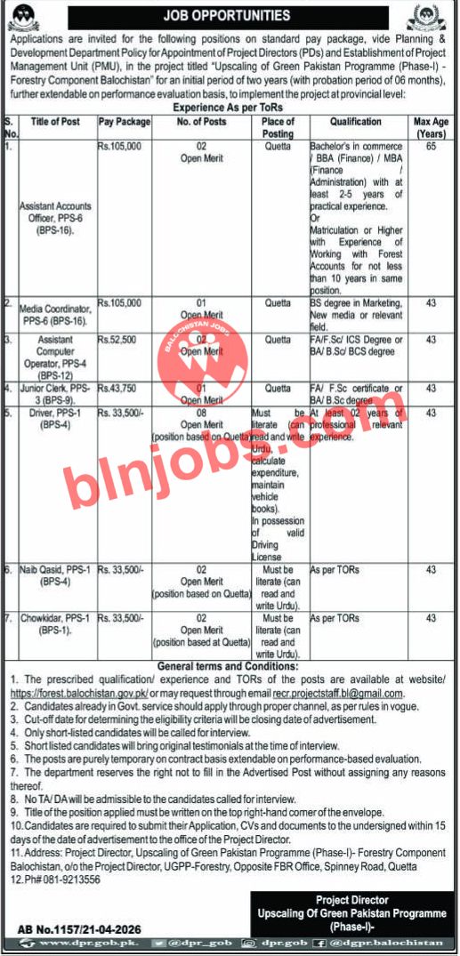 Upscaling Of Green Pakistan Programme Jobs 2026 has recently announced job vacancies for Balochistan 2026 in the local newspaper. This is an opportunity for candidates of Balochistan Local Domicile who are seeking employment in the province. The department is inviting applications from the candidates of Balochistan for the following Balochistan jobs 2026. If you meet the eligibility criteria and possess the required skills, this is your chance to apply and get these jobs in Balochistan.