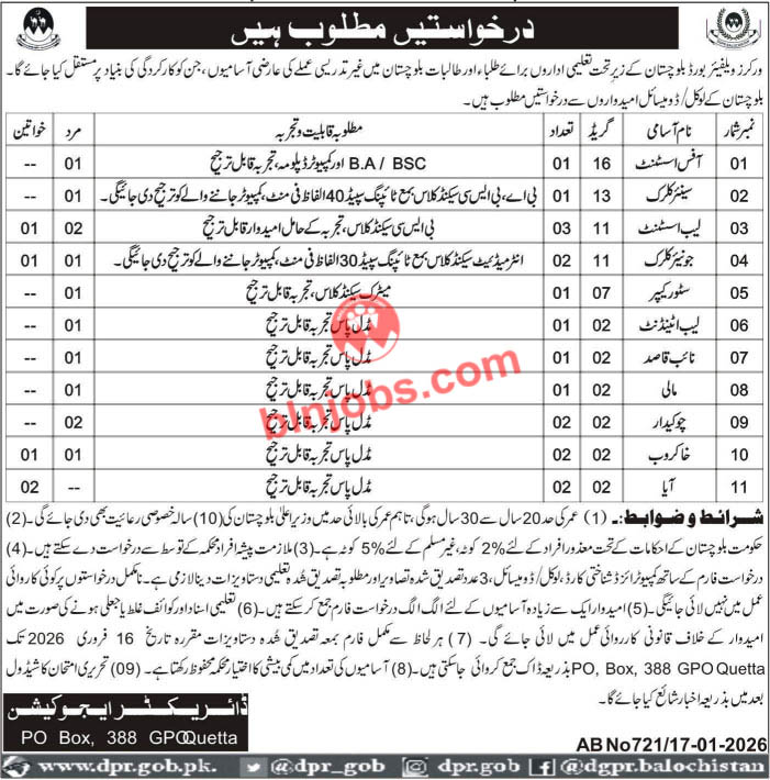 Latest Jobs in Workers Welfare Board Balochistan 2026| IMPORTANT LINKS