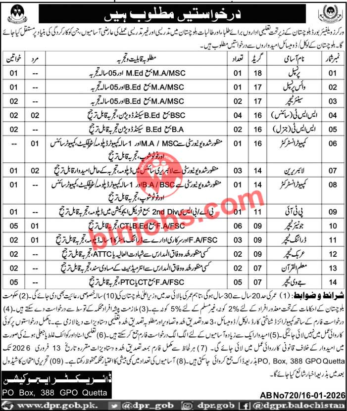Workers Welfare Board Balochistan Jobs 2026